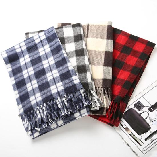 Women Winter Scarf Plaid Print Lightweight Soft Warm Scarf With Tassel Trim