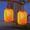 Solar Powered Rattan Lantern Chandelier Plastic Material Solar Wireless Rechargeable Nickel Battery Courtyard Garden Decoration