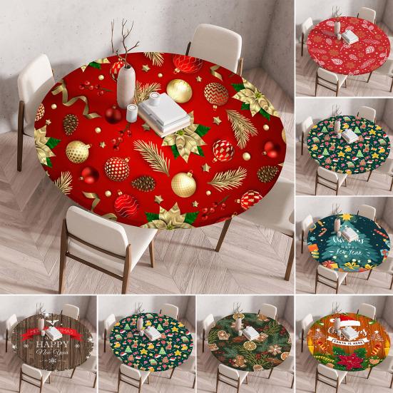 Transform your dining experience with our exquisite Christmas round tablecloths. Crafted using high-quality printing technology, these tablecloths boast clear patterns, vibrant colors, and a variety of styles. Whether it's a terrace gathering, outdoor picnic, wedding reception, or casual brunch, these tablecloths elevate any setting. Constructed from durable fabric with meticulous stitching, our round Christmas tablecloth offers long-lasting quality. Resistant to spills, UV rays, and wear, it maintains its shape even in the busiest kitchen or outdoor environment. The elastic edges ensure a snug fit on 36-40-inch round tables, making it ideal for outdoor camping or picnic parties without the need for clips or weights.