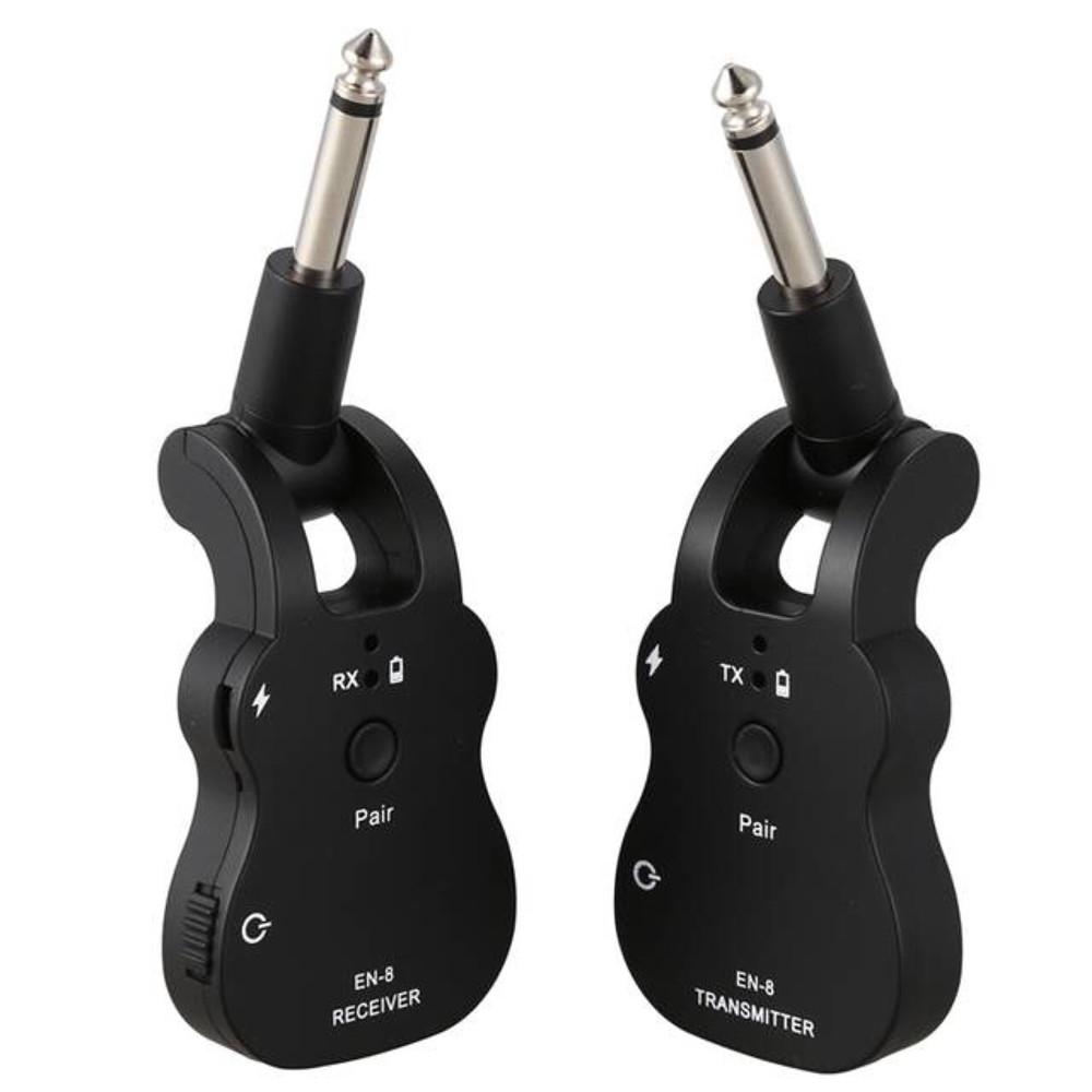 This product is a device specially developed for wireless connection of electric guitar. It is a wireless device with low noise, low delay, high sound quality sampling rate (48KHz) and long effective transmission distance.