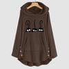 Womens Fleece Cat Embroidery Plus Size Warm Hoodie Top Button Sweater Blouse