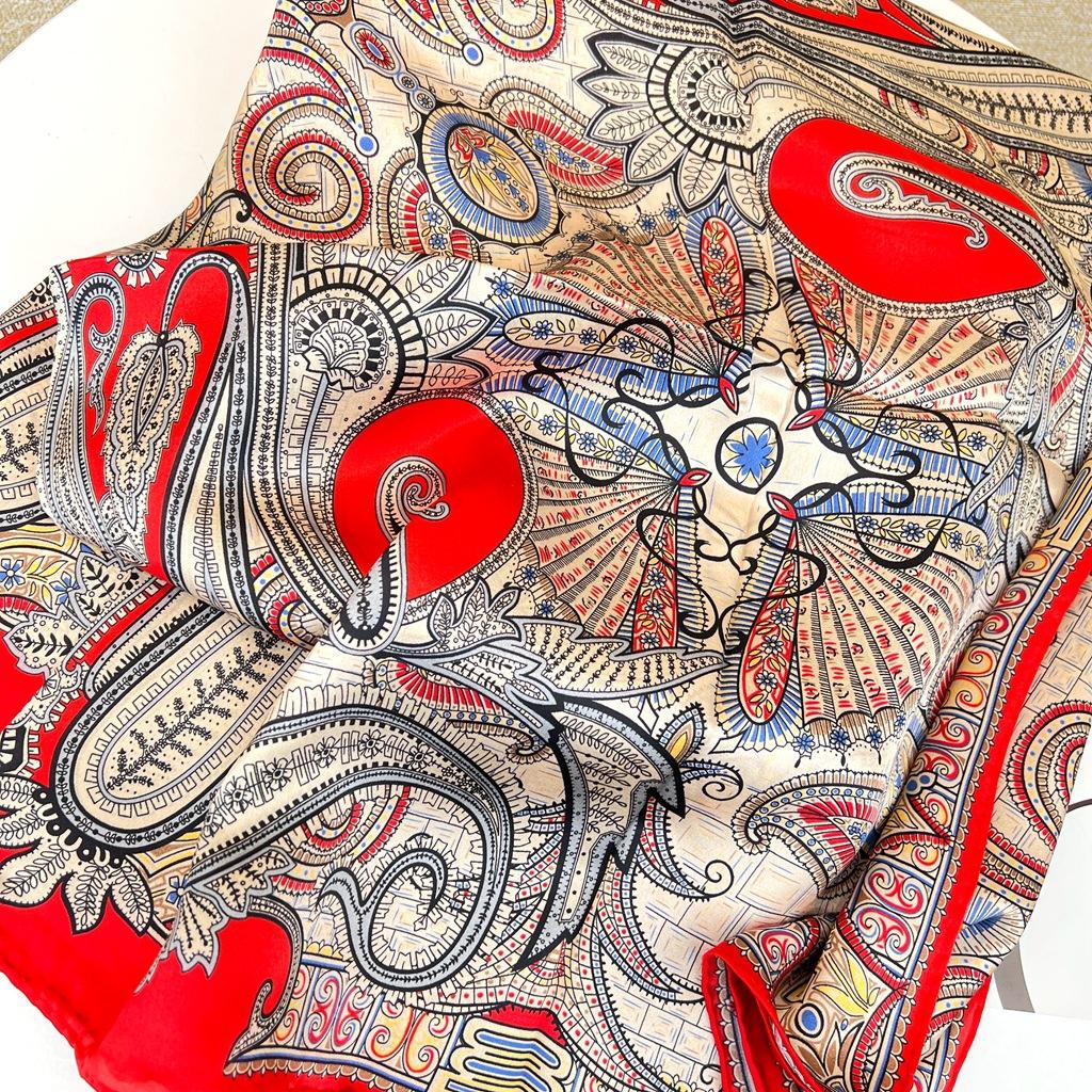 Beautiful And Atmospheric [Totem Red Waist Drum] Mulberry Silk Square Scarf Silk Scarf Shawl Woman