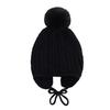 The solid color design adds versatility to any outfit, while the elastic fit ensures a snug and cozy feel. Complete with a charming hairball decoration and a secure strap, this hat not only keeps your child warm but also enhances their cuteness factor.