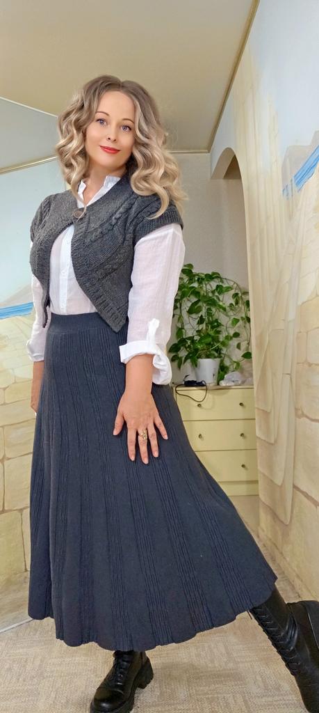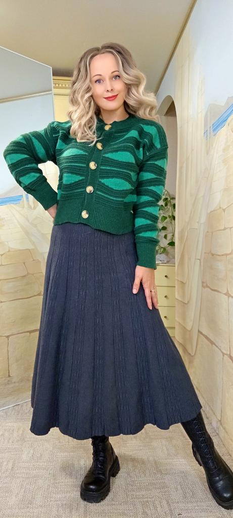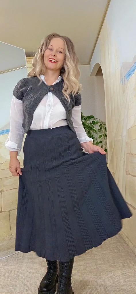 Elegant Fashion Autumn Winter Women Midi Skirt Elastic Waist Beige Grey Black Knitted Skirt Knitting Pleated Warm Skirts Womens — buy online with free worldwide shipping!