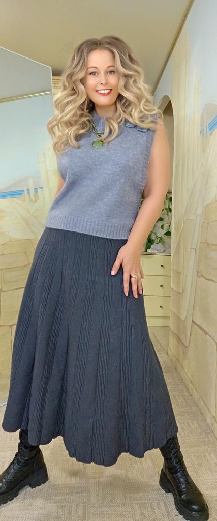 Elegant Fashion Autumn Winter Women Midi Skirt Elastic Waist Beige Grey Black Knitted Skirt Knitting Pleated Warm Skirts Womens