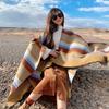 Scarf Women's Winter Outer Color Matching Striped Split Shawl Desert Travel Photo Cape Imitation Cashmere Thickened Warm
