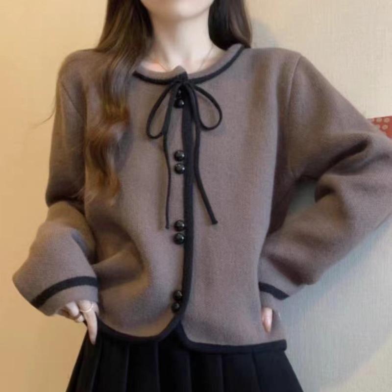 Autumn and winter new bow-tie knitted cardigan women's soft waxy loose age-reducing single-breasted sweater jacket — buy online with free worldwide shipping!