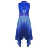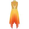 Girls Worship Dance Dress Mock Neck Sleeveless Asymmetrical Hem Shiny Sequins Bodice Liturgical Costume