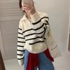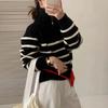 Autumn and Winter New Striped Semi-turtleneck Zipper Knitted Sweater Women's Casual Loose Lazy Wind Pullover Sweater