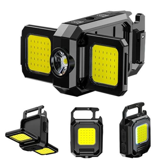 Double-sided Cob Foldable Design: Featuring a unique 90-degree foldable design, this keychain lamp boasts two Cob lamps that can be easily adjusted for focused or maximum brightness. Its practicality and durability make it a reliable companion for various tasks, ensuring hands-free illumination when needed.