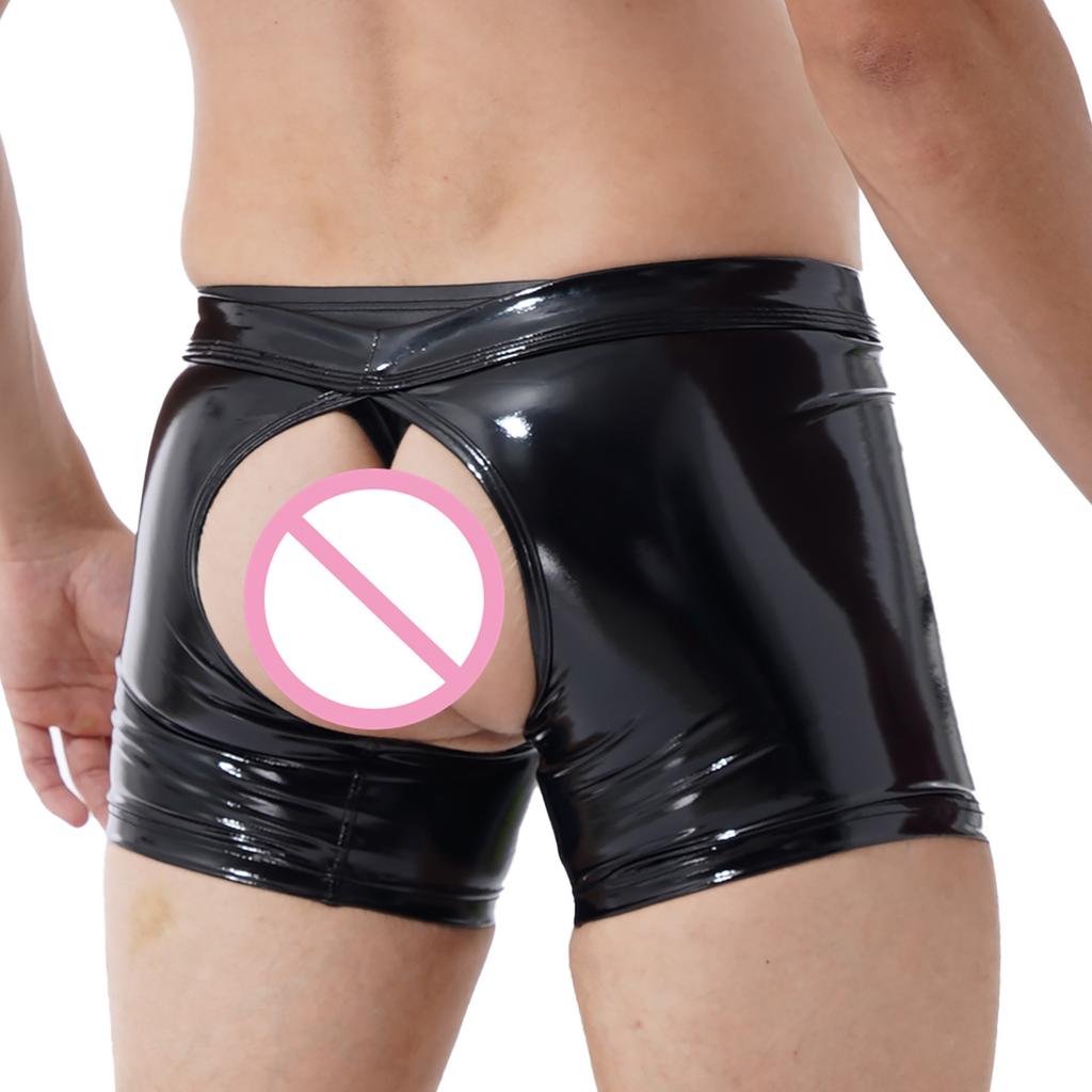 Men Underwear Shiny Metallic Latex Lingerie Erotic Open Butt Boxer Shorts Removable Bulge Pouch Shorts Underpant Boxer Underwear — buy online with free worldwide shipping!