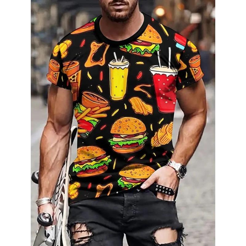 Men's 3D Printed Food Graphic T-Shirts Burgers Fries & Pizza Artistic Design T-shirts Summer Round Neck Short Sleeve Tops — buy online with free worldwide shipping!