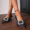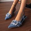 Ladies Shoes Elegant Rhinestone Belt Buckle Pointed Denim Sandals Large Size Hollow Women's High Heels