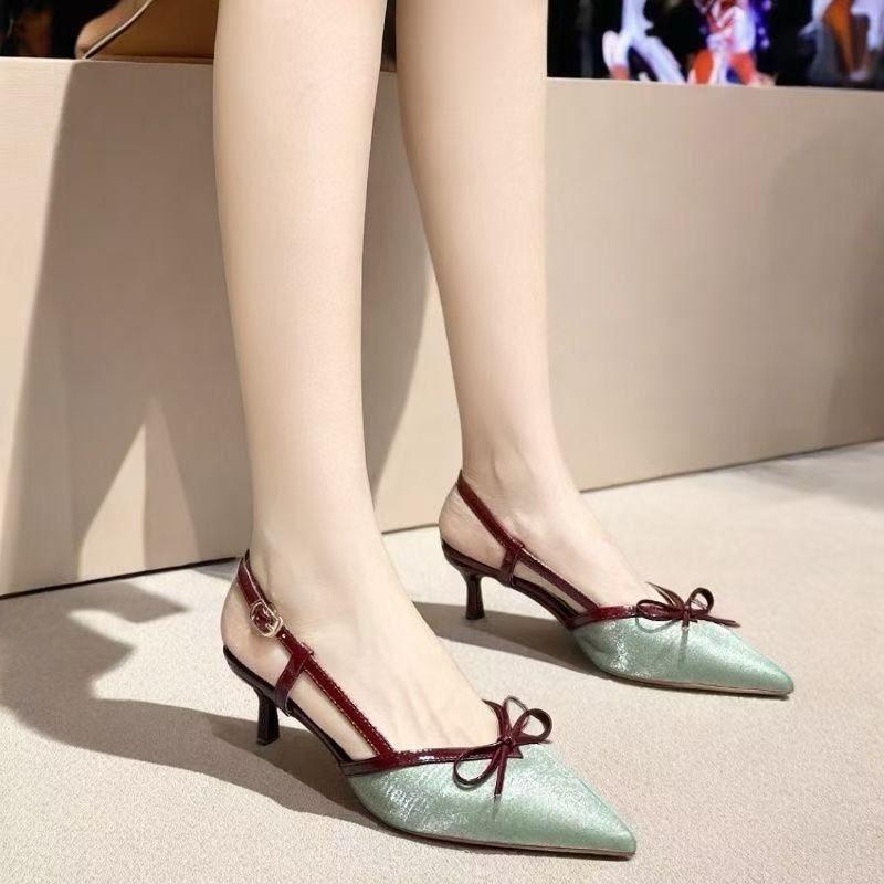 Spring and Summer New Niche Pointed Head Bow High Heel Women's Shoes Fashionable Versatile and Comfortable Bag Head Sandals Women