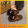Leopard Print Hello Kitty Slippers Women's Outer Wear Warm Soft Bottom Home Fluffy Plush Slippers Women's New Autumn and Winter