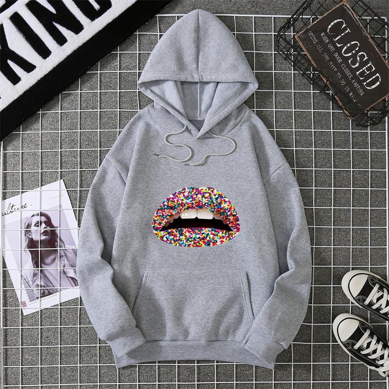 Fashion Lips Print Women Hooded Sweatshirt Casual Long Sleeve O Neck Loose Women Ladies Hooded Tops Clothes — buy online with free worldwide shipping!