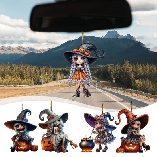 Enhance the festive spirit with our witch pendant, featuring rich Halloween elements like pumpkin lanterns and bats. This exclusive accessory adds a touch of ritual to any setting. Easy to install with simple lanyards, it's perfect for home, office, or car decoration.