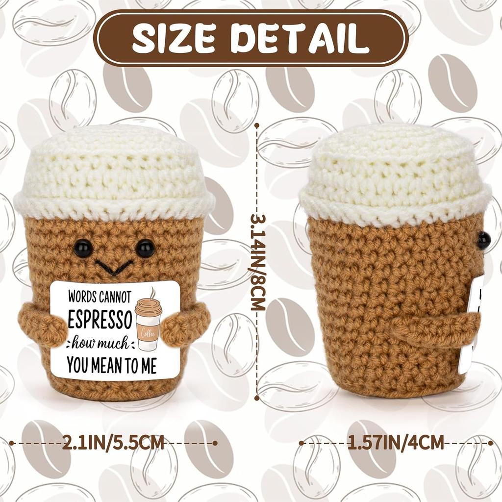 Funny Crochet Emotional Support Coffee Doll With Card Desktop Ornament Handmade Knitted Coffee Dolls Christmas Gifts Home Decor