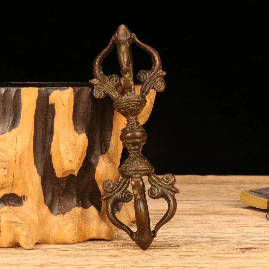 Tibet Buddhism Tibetan Silver Vajra-Pestle Phurba Holder Faqi Statue Red Copper — buy online with free worldwide shipping!