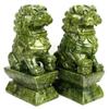 1 Pair China Green Jade Carved Fengshui Foo Fu Dog Guard Door Lion Office Decor