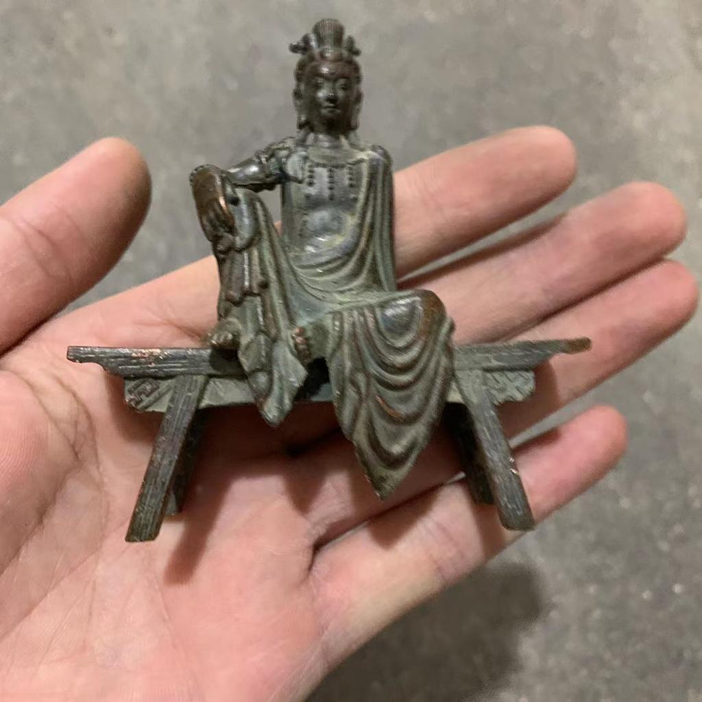 Old Chinese Bronze Copper Handmade Guanyin Bench Buddha Buddha Statue — buy online with free worldwide shipping!