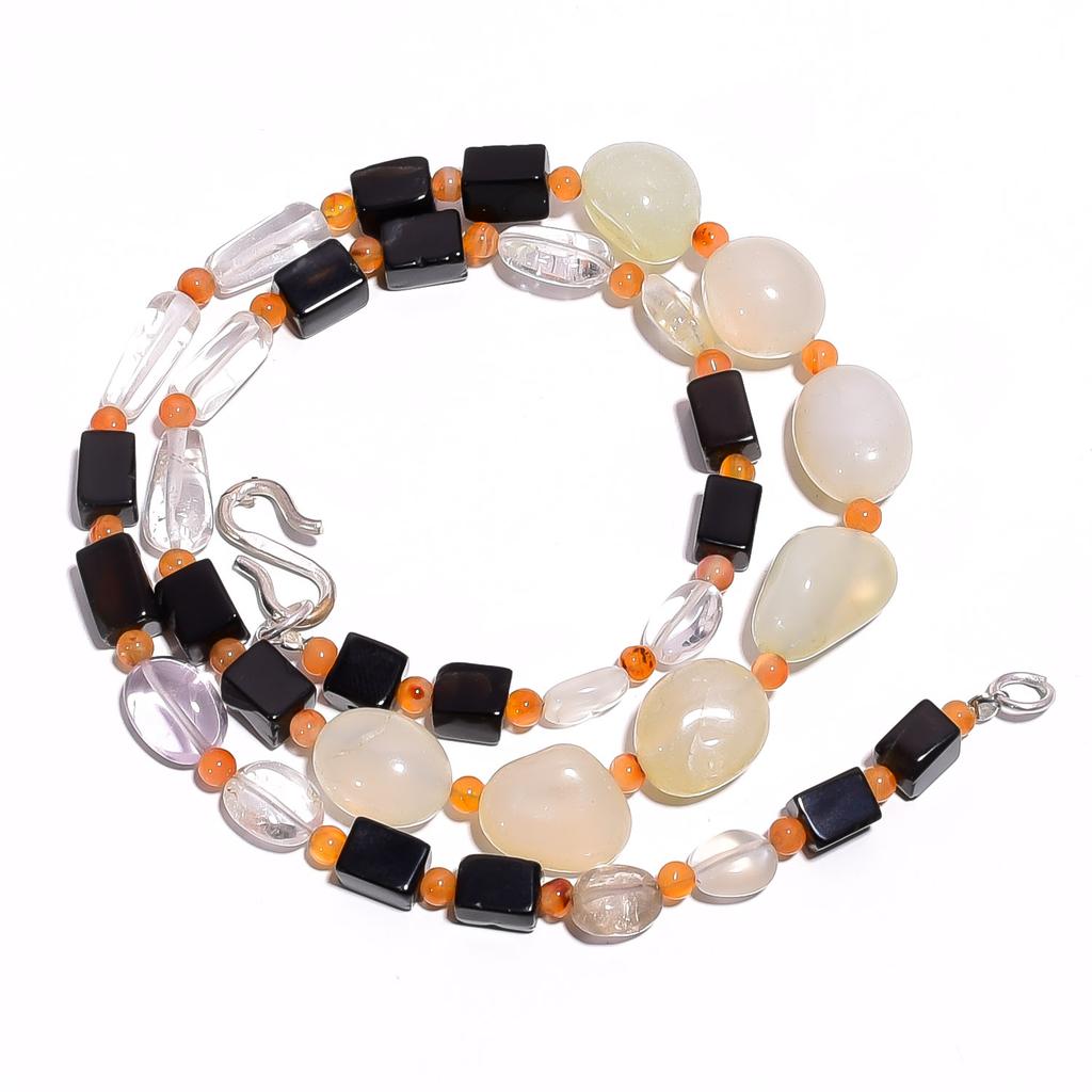 Natural Moonstone Black Onyx Crystal Gemstone Smooth Beads Necklace 17" UB-4627 UB-4627