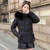 European and American Waist-hugging Cotton Jacket for Women, Short Winter Loose Thickened Large Fur Collar Coat