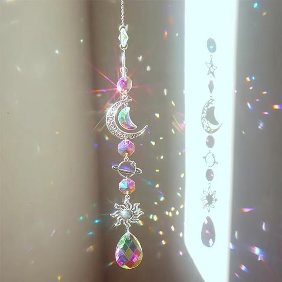 Enhance your living space with this exquisite sun catcher. Effortlessly hang this window decoration to experience mesmerizing rainbows dancing across your room on sunny days. The design of stars and moons promotes balance and harmony, fostering a peaceful ambiance.