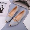 New Flat Bottom Pointed Head Shallow Mouth Single Shoes Women's Fashion Metal Head Bright Leather Princess Shoes