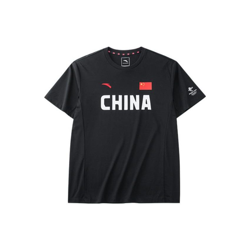 Anta All-Weather Series Solid Color Letter Print Round Neck Casual National Flag Short Sleeve T-Shirt Men Tops Black 152220115-1 — buy online with free worldwide shipping!