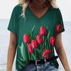 Beautiful Tulip Print 3D Printed Women's Artistic Style V-neck Short Sleeved T-shirt