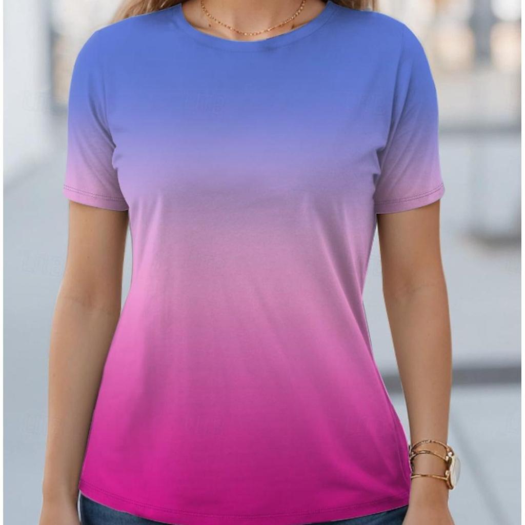 Summer Round Neck 3D Gradient Print T-shirts Fashionable Casual Short Sleeved Women's T-shirts — buy online with free worldwide shipping!
