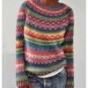 Women's Round Neck Color Blocked Loose and Fashionable Pullover Knitted Sweater for Autumn and Winter — buy online with free worldwide shipping!