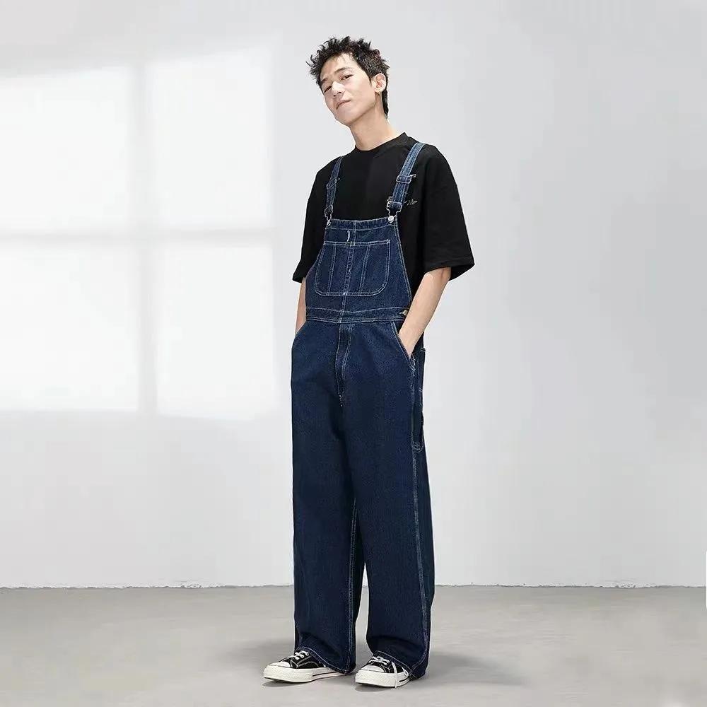 Plus Size Denim Overalls Men's Trend Korean Version of Loose Wide-leg Overalls One-piece Performance Suspenders — buy online with free worldwide shipping!