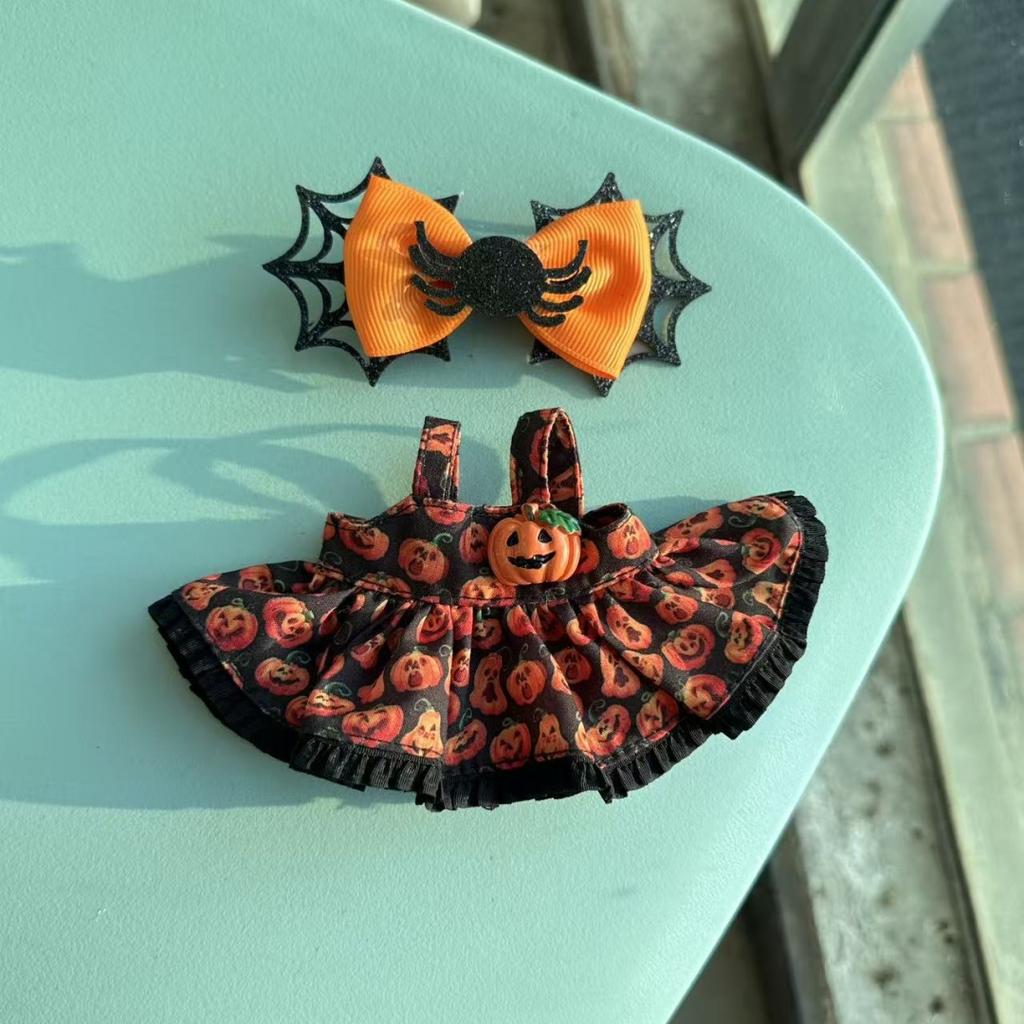 17cm Dolls Clothing For Labubu Outfit Accessories Sitting Party Halloween Trick-Or-Treat Series Accessory Pumpkin Headwear Dress