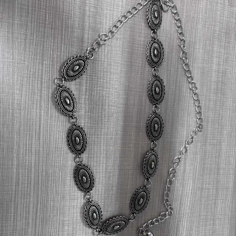 Vintage Ethnic Floral Silvery Chain Metal Waist Belt for Spicy Dress and Pants Adjustable Extension