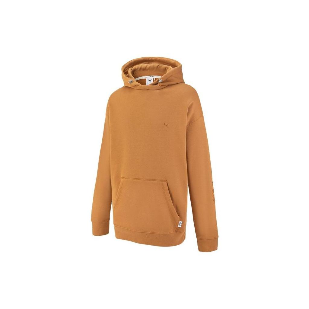 Puma Mmq Series Solid Color Logo Embroidered Hooded Knit Long Sleeve Sweatshirt Unisex Tops Earth-Yellow 536596-74