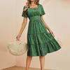 Summer Love Pattern Dot Print Dress Women Casual A-Line Short Sleeve Square Collar Ruffles Medium Long Chiffon Red Black Blue Green — buy online with free worldwide shipping!