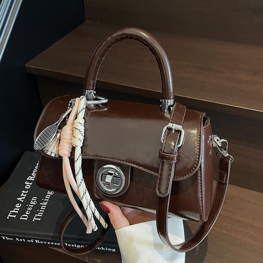 Chic PU Handheld/Shoulder/Crossbody Bag with Optional Accessory Detail: Crafted from PU with a smooth finish, featuring an optional decorative accessory that adds a touch of playfulness and charm. Designed for handheld, single - shoulder, or cross - body wear, ideal for adding a stylish touch to daily outings, parties, or casual events.