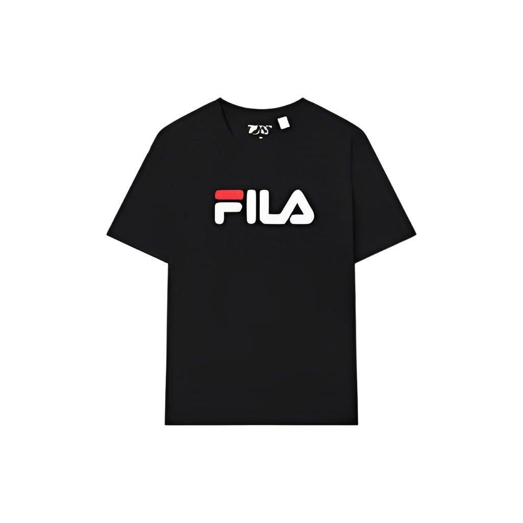 Fila Brand Logo Print American Retro Round Neck Short Sleeve T-Shirt Unisex Tops Black F51U318199FBK