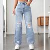 Women's High Waist Washed Women's Jeans Fashionable Versatile Straight Leg Pants — buy online with free worldwide shipping!