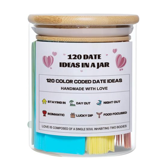 Unique Date Ideas: Discover a range of affordable and creative date suggestions within this charming glass jar. Ensure you and your partner always have exciting activities to keep your relationship vibrant and engaging.