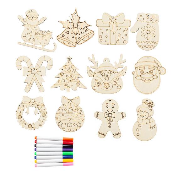 Enhance your Christmas decor with these diy christmas cutouts. This set includes 8 colored pens and hemp ropes for easy use and hanging, saving you time and money on additional tools. Crafted from environmentally friendly wood, these cutouts add a natural touch to your holiday display, bringing warmth to your home. Get creative with the blank wood boards, allowing you to hand-paint and doodle to your heart's content, making each decoration unique.