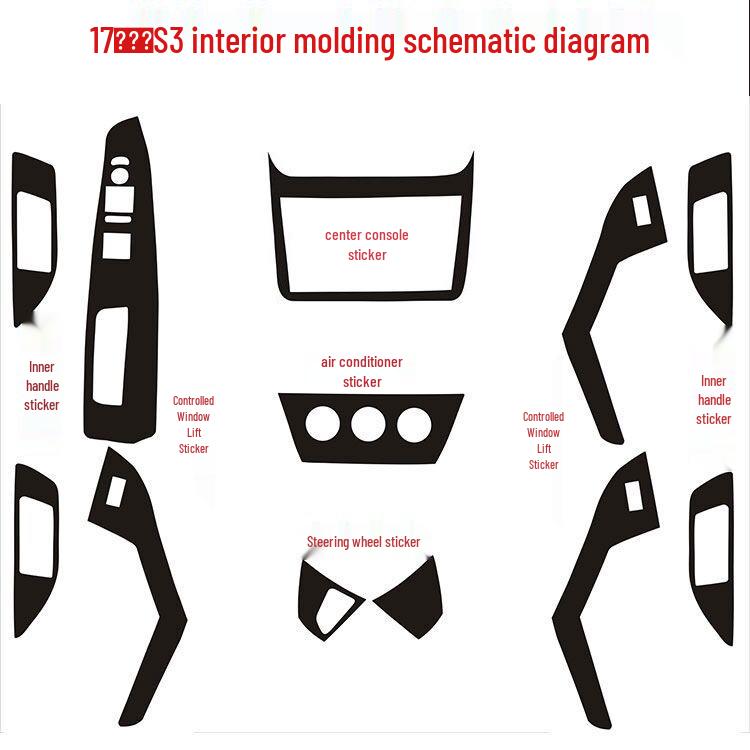 BAIC Huansu S3 Carbon Fiber Interior Mods: Control Panel & Door Trim Stickers for 17 Models