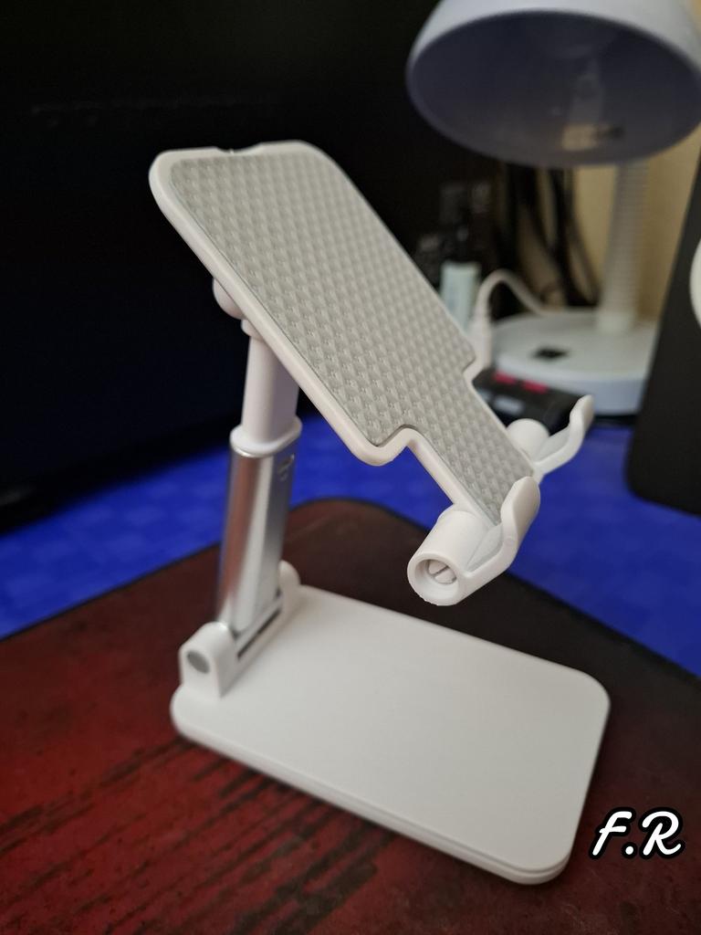 Mobile or tablet support. It has very good quality and is super nice to look at with a modern and current design, nothing to do with the supports that we are used to seeing. For quality and price I personally recommend it. 👍👍👌👍👍 📦 Package Content: An ultra-thin mobile or tablet holder. 👍Pros: Delivery to Spain in 24 days ✈️. Super well packed for the trip. Excellent presentation in its box. the quality is great. Echo of It has to put it in various positions and height. Contains non-slip cushion. The seller has two colors to choose from: white or black. 👎Cons: nothing to write home about. .