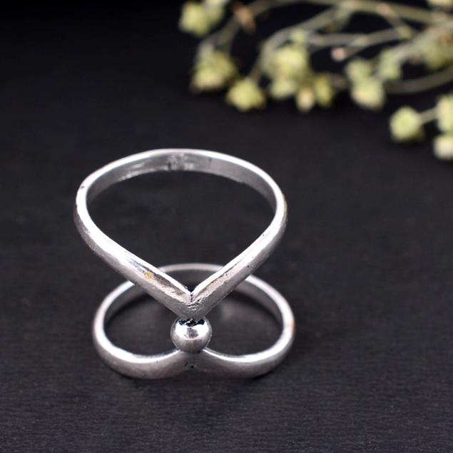 Handmade Oxidized Silver V-Shape Double Band Ring – Adjustable Tribal Thumb Ring, Boho Minimalist Statement Jewelry for Men & Women