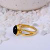 Make a sophisticated and sleek statement with this Black Onyx Gold Plated Oval Ring. The piece features a deep black, glossy natural Black Onyx gemstone, beautifully set in a minimalist gold-toned band with unique split-shank detailing. The contrast between the stark black stone and the warm gold plating creates an elegant, eye-catching effect. Black Onyx is widely known as a stone of protection and strength, making this ring a meaningful and powerful accessory.