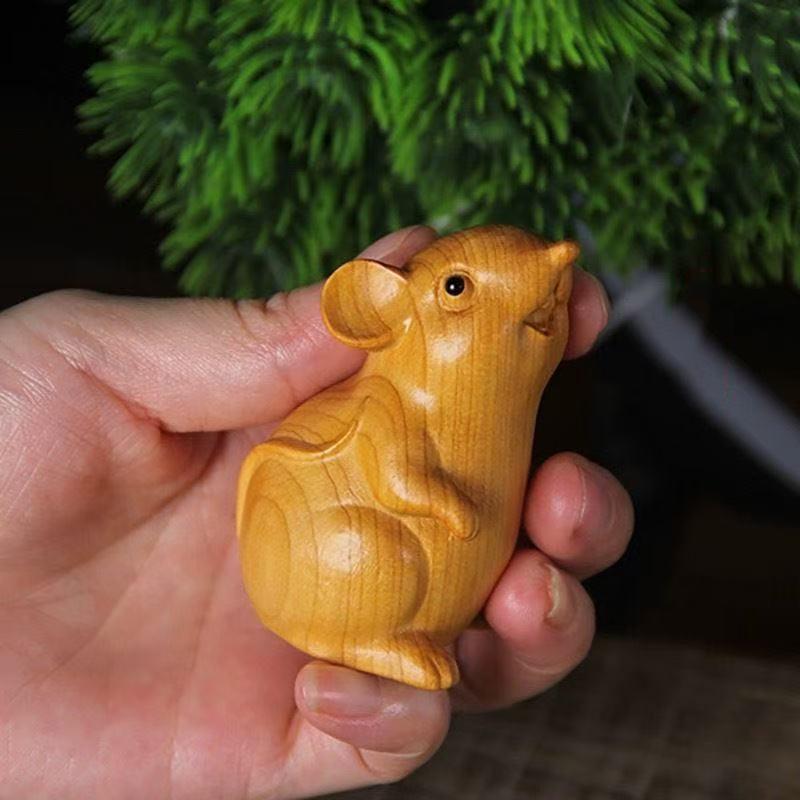 Natural Cypress Animal Hamster Small Statue Cute Home Room Car Decoration Ornaments Chinese-style Zodiac Sign Gift
