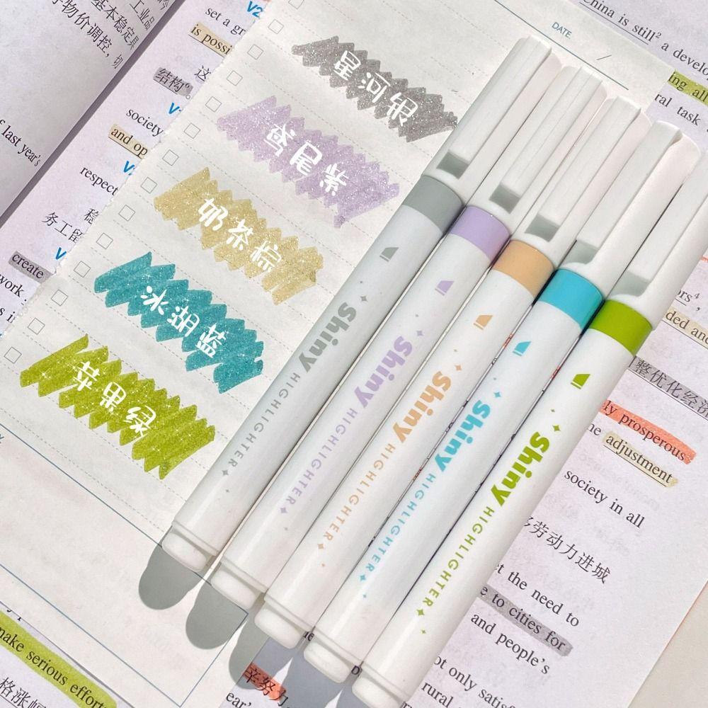 5PCS Plastic Draw Doodle Pens Colorful Shiny Fluorescent Pen Marking Pen School Office Supplies