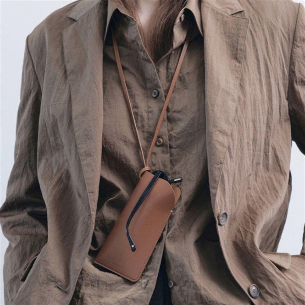 Hanging Neck Outdoor Glasses Storage Bag Solid Color Women Eyeglass Cover Sunglasses Storage Clip